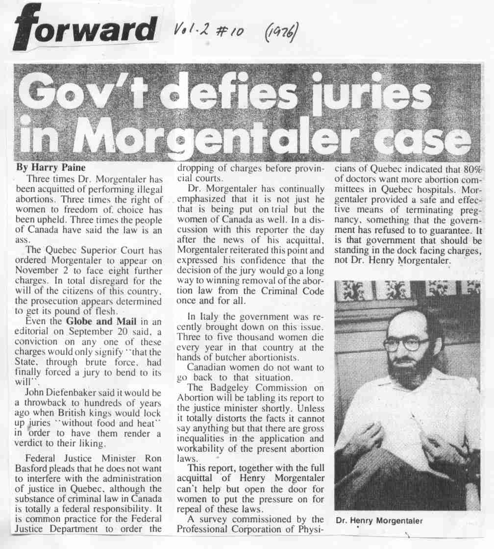 Morgentaler still in jail, gov’t steps up abuse Where are women at now? (IWY balance sheet) |