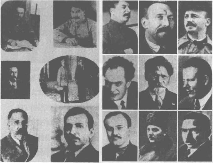 1928年的一批反对派。前排:谢列布里亚科夫、拉狄克、托洛茨基、博古斯拉夫斯基、普列奥布拉任斯基;后排:拉柯夫斯基、德罗布尼斯、别洛博罗多夫、索斯诺夫斯基