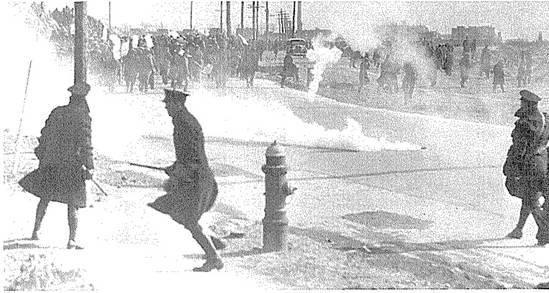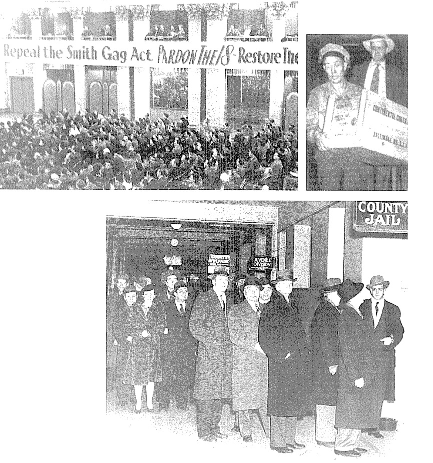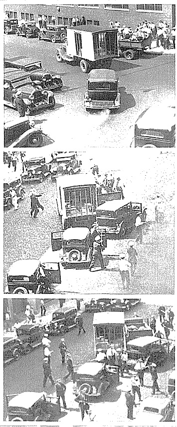 ![]() 纠察队员与警察战斗。 ![]() 1933年3月,农民在圣保罗市的明尼苏达州议会大楼前游行,要求政府提供援助,在1934年罢工中,农民成了工人的盟友。 ![]() 1934年4月6日,由于联邦政府提供的“救济”过少,甚至达不到贫困线,一万名失业工人在明尼阿波利斯游行抗议。警察随后用催泪弹驱散了游行队伍。 ![]() 1932年7月,15000名失业的一战退伍军人在华盛顿国会大厦附近扎营,要求获得他们应得的退役金。道格拉斯·麦克阿瑟将军出动骑兵和坦克镇压,导致两人死亡,多人受伤。 ![]() 1932年3月,3000名失业工人在福特汽车公司红河工厂举行游行,遭到警察镇压,导致5人死亡,60人受伤。 ![]() 1932年2月,日帝侵略上海,残暴的日寇焚毁了工人区,而富人居住的租界却被美军保卫着,毫发未损。奥马哈的报纸上刊登的这类照片,使法雷尔·多布斯理解了阶级之间是不平等的,明白了世界资本主义体系的野蛮是令人无法忍受的。 ![]() ![]() 以上两张图是“治安队狼狈逃窜之战”(Battle of Deputies Run):1934年5月21—22日,几百名工人在明尼阿波利斯市场区包围了警察和治安队(公民联盟收买的打手),把他们打得屁滚尿流。 ![]() “血腥星期五”惨案:1934年7月20日,警察向手无寸铁的纠察队员开枪,导致67名纠察队员和路人受伤,其中两名罢工工人因伤重身亡(亨利·内斯于7月22日逝世,约翰·贝洛于8月1日逝世)。 ![]() 1934年7月24日,四万多人为亨利·内斯送葬。 ![]() 为了纪念亨利·内斯,同志们在574分会罢工总部入口上挂上了花圈和牌匾,牌匾上刻着他的遗言:“告诉小伙子们,别让我失望。” ![]() 奥尔森州长(左)和联邦调解员弗兰西斯·哈斯神父(中)与尤金·邓尼根(右)。他们相互勾结,想把“公平”的罢工协议推销给工人。 ![]() 7月26日,奥尔森出动四千国民警卫队,在明尼阿波利斯实施戒严。图为奥尔森的军队保护工贼卸货。 ![]() 8月1日,国民警卫队士兵端着上了刺刀的步枪,查抄了劳联总部。 ![]() 上图:8月1日,国民警卫队查封了574分会罢工总部,抓走了雷·邓恩;下图:格兰特·邓恩(左一)与574分会律师阿尔伯特·戈尔德曼(右一)迎接比尔·布朗(戴白帽者)、迈尔斯·邓恩和雷·邓恩出狱。 ![]() 纠察队员检查卡车司机是否持有工会发放的通行证。 ![]() 8月1日,就在国民警卫队查封工会总部、逮捕罢工领袖之后,仅仅过了几个钟头,国民警卫队就接到了工贼打来的500多个求救电话。图为被掀翻的工贼卡车。 ![]() 纠察队总调度员凯利·波斯特尔。 ![]() 罢工期间,为了团结农民,574分会特地租了一个停车场,让农民在这个停车场里卖菜,而且不收摊位费。 ![]() 罢工工人在工会食堂里打饭。这个食堂是由妇女后援会运营的。 ![]() 上图:574分会的罢工领袖,左起:比尔·布朗、法雷尔·多布斯和卡尔·斯科格伦德;中图:邓恩三兄弟,左起:雷、格兰特和迈尔斯;下图:马克斯·沙赫特曼(左)与詹姆斯·坎农(右)。 ![]() 上图:1934年纺织工人总罢工期间的乔治亚州格林斯伯罗市纺织工人纠察队,在大西洋沿岸有四十万人参加了这次罢工。罗斯福派出四万军队镇压罢工,导致16人死亡,数百人受伤。 下图:1936年,纽约哈莱姆区的工人为了改善生活条件而举行罢工。 ![]() 左图:西海岸码头装卸工人坚持罢工三个月,迫使资方承认工会、增加工资并减少劳动时间;中图:1934年8月25日的《战士报》头版刊登了明尼阿波利斯卡车司机罢工胜利的消息;右图:俄亥俄州托莱多市的汽车配件工人举行罢工,战胜了老板。在这次罢工期间,发生了长达六天的巷战,史称切斯特纳特山之战(Battle of Chestnut),这张照片就是当时拍摄的。 ![]() 1936年12月,密歇根州弗林特市的通用汽车工人举行静坐罢工,次年2月,罢工赢得胜利。 ![]() 1937年元旦,罢工中的底特律汽车工人举行示威游行。 ![]() 密歇根工人抗议共和钢铁公司枪杀芝加哥工人。 ![]() 卡车司机总工会内布拉斯加州奥马哈市第554分会的领导人首次进行纠察。左起:迪克·索登贝格(Dick Sodenberg)、路易斯·米勒(Louis Miller)与马尔科姆·拉夫(Malcolm Love)。 ![]() ![]() 明尼阿波利斯—圣保罗地区的工会会员成立了工会自卫团(Union Defense Guard),抵挡老板豢养的法西斯分子和其它反动派。 ![]() 工会自卫团总团长、544分会会员雷·雷因波尔特。 ![]() 1939年,明尼阿波利斯公共事业振兴署下水道工程项目工人举行罢工。 ![]() 1939年8月,蒙冤入狱长达23年之久的加利福尼亚工会组织者汤姆·穆尼(Tom Mooney)访问明尼阿波利斯,在工人大会上发表讲话。 ![]() 左图:1937年12月,由于日军轰炸了中国境内的美国炮艇,美国国内掀起了出兵的喧嚣声,在这一片喧嚣声中,明尼阿波利斯卡车司机联合委员会的周报《西北组织者》指出,美国大公司正在残酷剥削中国劳动者。“他们说的‘我们’到底是谁?凭什么叫我们出钱出人去保护身在中国的‘他们’?让美军全部撤离中国!”;右图:1940年1月,多布斯辞去国际卡车司机兄弟会总组织者的职务,前往纽约担任社会主义工人党的工人与组织书记途中,前往墨西哥拜访了托洛茨基同志。 ![]() 1941年,罗斯福政府为了进行战争动员、镇压阶级斗争,动用臭名昭著的《史密斯法案》(Smith Act),起诉了544分会和社会主义工人党的18位领导人。下图:1943年12月,多布斯(中间者)和另外17人被指控犯有“煽动暴乱”的罪名,这张照片是在他们被押往联邦监狱的途中拍摄的。多布斯右边是党的领袖卡尔·斯科格伦德、阿尔