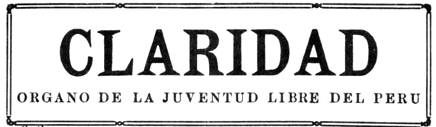 Claridad, “Órgano de la juventud libre del Perú”, apareció en Lima en mayo de 1923 bajo la dirección de Víctor Raúl Haya de la Torre, publicándose hasta noviembre de 1924. Desde sus inicios estuvo vinculado al movimiento de reforma universistaria y a la Universidad Popular "Gonzalez Prada". Se publicaron siete números en total.