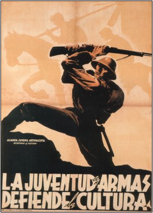 [9] Remarquable association d'idées dont les auteurs ne pourront se lasser, car elle se retrouve dans tous les textes régissant la littérature en zone nationaliste. Telle cette étonnante organisation des bibliothèques, non pas censure passagère, explicable par la guerre, mais préparation d'un contrôle systématique destiné à éliminer définitivement la « littérature dissolvante » des bibliothèques publiques et des centres de culture. Dans chaque district universitaire est formée une commission dont font partie « le recteur ou son délégué, un professeur de la faculté de philosophie ou de lettres, un délégué du corps des archivistes bibliothécaires et archéologues », qui sont les délégués des universitaires laïques, mais aussi « un représentant de l'autorité ecclésiastique, un de l'autorité militaire, un désigné par la délégation de la Culture de la Phalange, enfin un père de famille désigné par l'association catholique des pères de famille ». A chaque autorité, il appartiendra de dénoncer, parmi les publications considérées comme dangereuses, celles qui représentent une « dépréciation de la religion catholique », un manque de respect « à la dignité de notre glorieuse armée » et un « attentat envers l'unité de la Patrie ». De façon plus précise, il est recommandé de détruire purement et simplement les œuvres « pornographiques et sans valeur littéraire », révolutionnaires, mais « sans contenu idéologique de valeur essentielle ». On pourra conserver au contraire les œuvres de valeur; mais, pour éviter qu'elles ne tombent entre les mains de « lecteurs ingénus », elles ne seront accessibles qu'aux lecteurs munis d'une autorisation spéciale de la commission de la Culture.