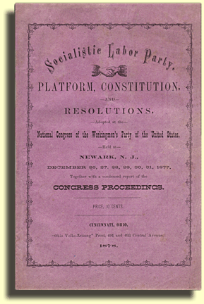 Socialistic Labor Party: Platform, Constitution, and Resolutions. Adopted at the National Congress of the Workingmen’s Party of the United States, Held at Newark, NJ, December 26-31, 1877. Together with a Condensed Report of Congress Proceedings. [1878]