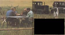 ![]() | Workers on a collective farm break for a relaxed lunch. In the background, their DT-75M tractors rest. (circa 1980s) |