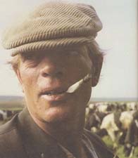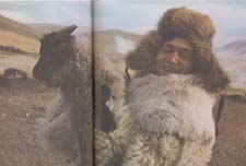 ![]() | A happy mongol worker of the Kosh-Agach region holds up a goat that he uses as breeding stock for its fleece.(circa 1980s) |