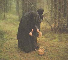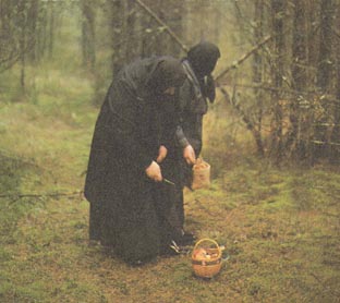 ![]() | In the Convenant of the Assumption, a nun prays in her room. | Self-sufficient nuns gather wild mushrooms. |