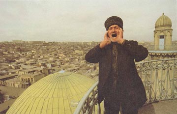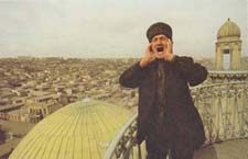 ![]() | A Mullah sounds the call to prayer atop a minaret in Bukhara. The Muslim population of the Soviet Union bulged at over 30 million people; around 15% of the total population of the union. |