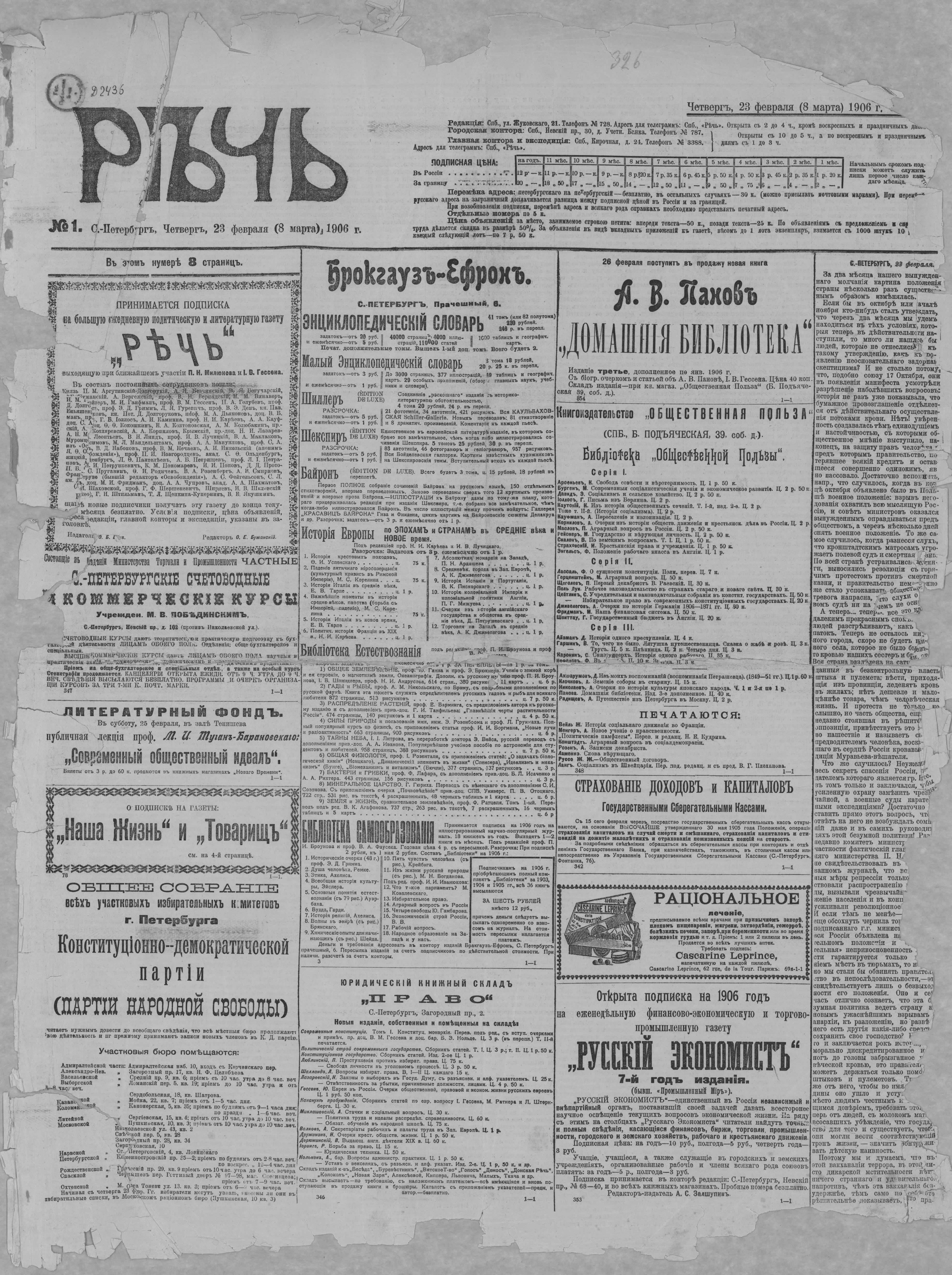 (1906-1917): jornal diário, órgão central do partido cadete. Publicou-se em Petersburgo de fevereiro de 1906 a 26 de outubro de 1917.