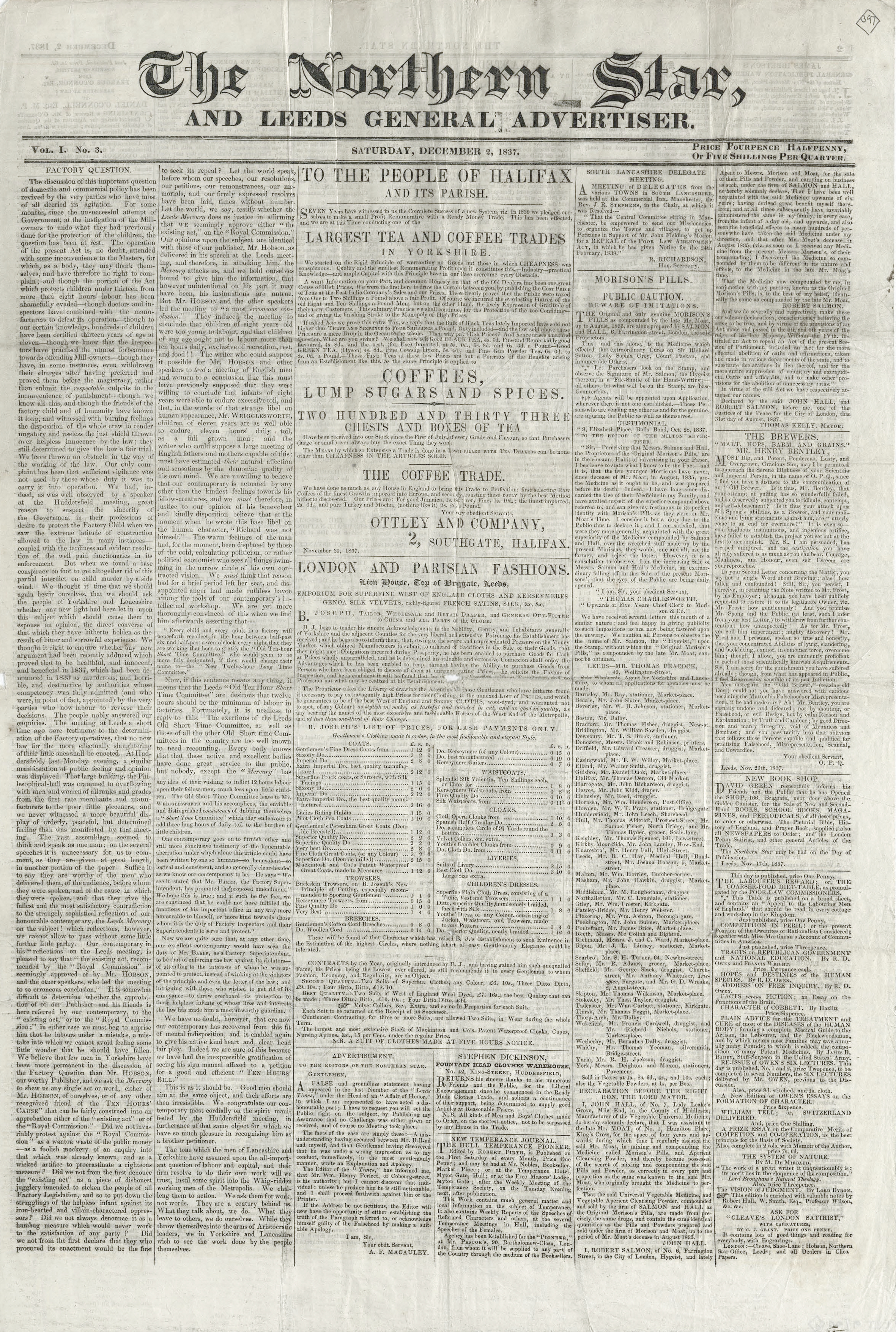 Imagem The Northern Star (A Estrela do Norte)  - By The Northern Star, Nineteenth-Century Serials Edition - The Northern Star (Retrieved from Nineteenth-Century Serials Edition http://www.ncse.ac.uk, Extracted from PDF), Public Domain, https://commons.wikimedia.org/w/index.php?curid=53454038