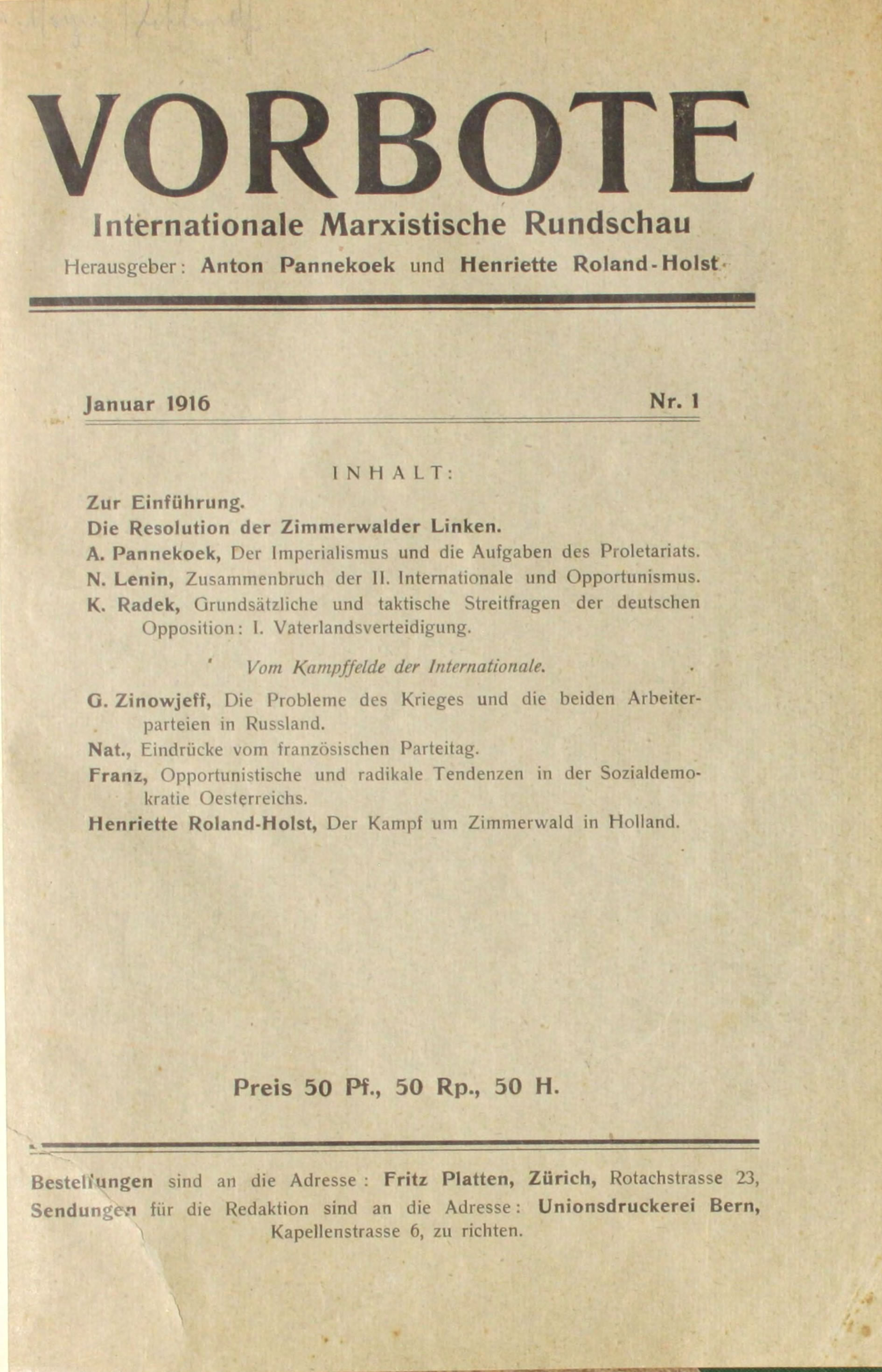 (1916): Revista, órgão teórico da esquerda de Zimmerwald; publicou-se em alemão em Berna, em 1916. Saíram dois números. Os editores oficiais da revista eram G. Roland-Holst e A. Panneckoek. Lénine participou activamente na fundação da revista e, depois de ter saído o primeiro número, na organização da sua tradução para a língua francesa com o objectivo duma maior difusão. Nas páginas da revista desenvolveu-se a discussão entre os representantes da esquerda de Zimmerwald sobre a questão do direito das nações à autodeterminação e a palavra de ordem de «desarmamento».