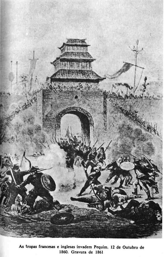 Num esforço para obter ainda mais concessões, a Inglaterra e a França instigaram outro conflito mandando uma força expedicionária a Pequim. O imperador e o seu séquito fugiram aterrorizados da cidade. As forças europeias saquearam a cidade barbaramente e queimaram a residência de verão do imperador com os seus famosos palácios e os preciosos tesouros artísticos da China e de outro países asiáticos. O irmão do imperador Hung, abriu as portas da capital ao inimigo. Em vinte e quatro de Outubro de 1860 foi assinada a Convenção de Pequim que abriu o porto de Tientsin ao comércio estrangeiro e lhe conferiu nova série de privilégios.