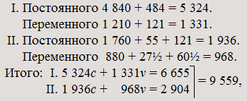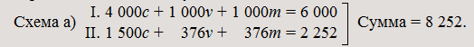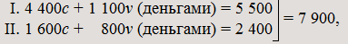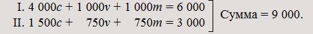 I. | 4 400c | + | 1 100v | + | 500 | фонд потребления | = | 6 000 |