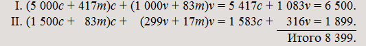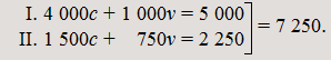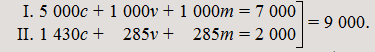 I. (5 869c + 489m)c + (1 173v + 98m)v = 6 358c + 1 271v = 7 629