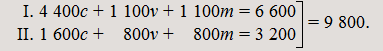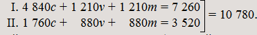 II. | (1 600c + 50c + 110c) | + | (800v + 25v + 55v) | = | 1 760c + 880v | = | 2 640. |