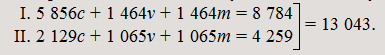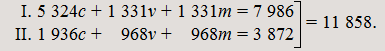 II. (1 715c + 45m + 98m)c + (342v + 9m + 20m)v = 1 858c + 371v = 2 229