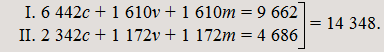 II. (1 583c + 42m + 90m)c + (316v + 8m + 18m)v = 1 715c + 342v = 2 057,