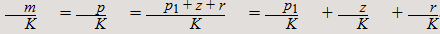 p1 / K, z / K и r / K, каждое само по