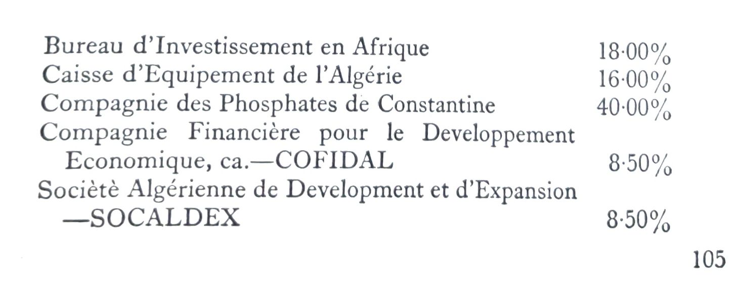 The Société de Djebel-Onk, with a capital of 30 million new francs, comprises the following interests: