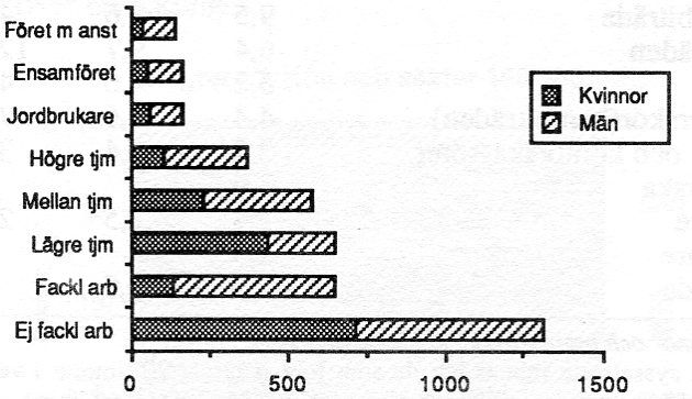 Källa: Kvinno- och mansvär(l)den. Fakta om jämställdheten i Sverige 1986.
