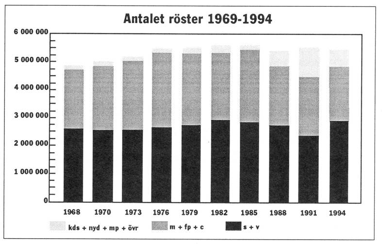 I 1991 års val gjorde förvisso socialdemokratin och vänsterpartiet ett dåligt resultat och tappade över 300 000 röster jämfört med valet 1988. Men de hade tillsammans ändå cirka 150 000 fler röster än moderaterna, centern och folkpartiet ihop.