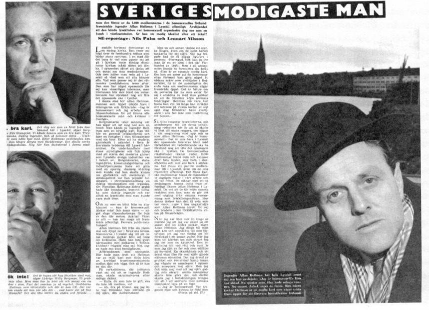 I tidningen SE utnämner den legendariske chefredaktören Rune Moberg Allan Hellman i Lysekil till Sveriges modigaste man. Året är 1951. Hellman är homosexuell. Men inte bara det, han har öppet talat om det för alla som velat höra. Han har dessutom grundat den organisation som blev Riksförbundet för sexuellt likaberättigande.